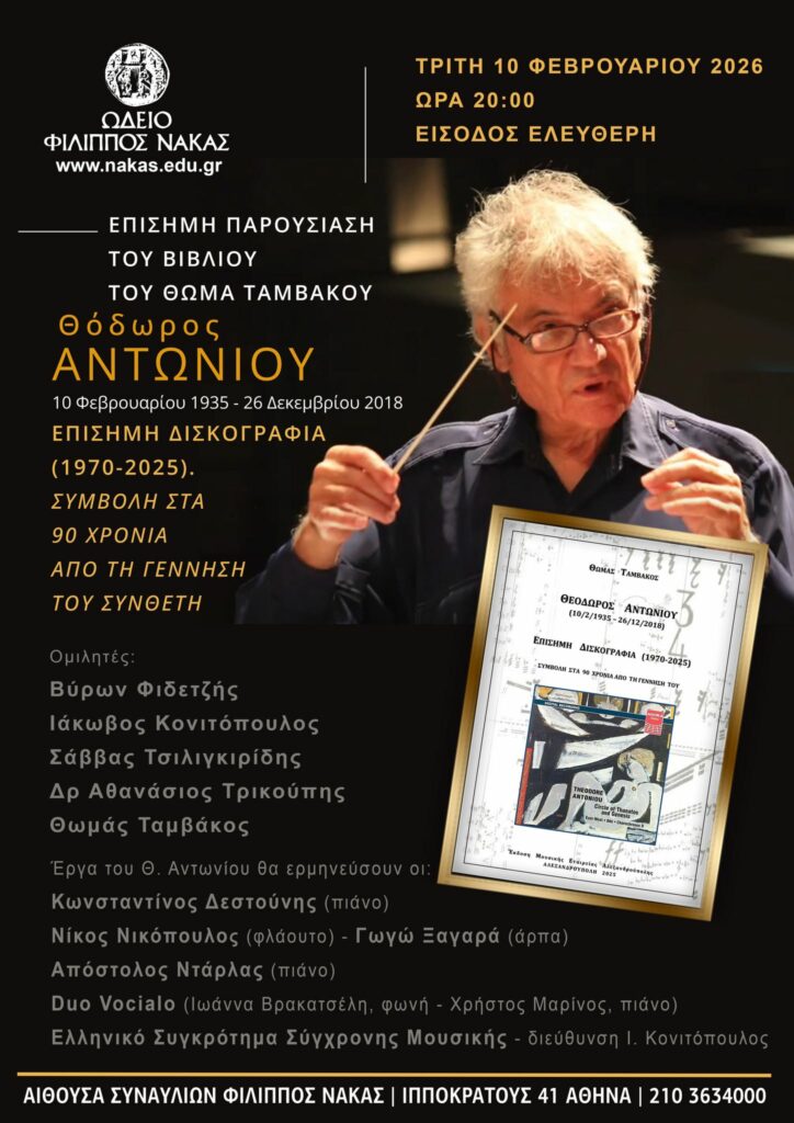 Επίσημη παρουσίαση του βιβλίου του απόφοιτου της Ζωσιμαίας Σχολής Θωμά Ταμβάκου για το Μουσουργό Θόδωρο Αντωνίου.