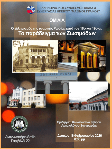 Πρόσκληση σε ομιλία με θέμα: «Ο ελληνισμός της τσαρικής Ρωσίας κατά τον 18ο και 19ο αι. Το παράδειγμα των Ζωσιμάδων».