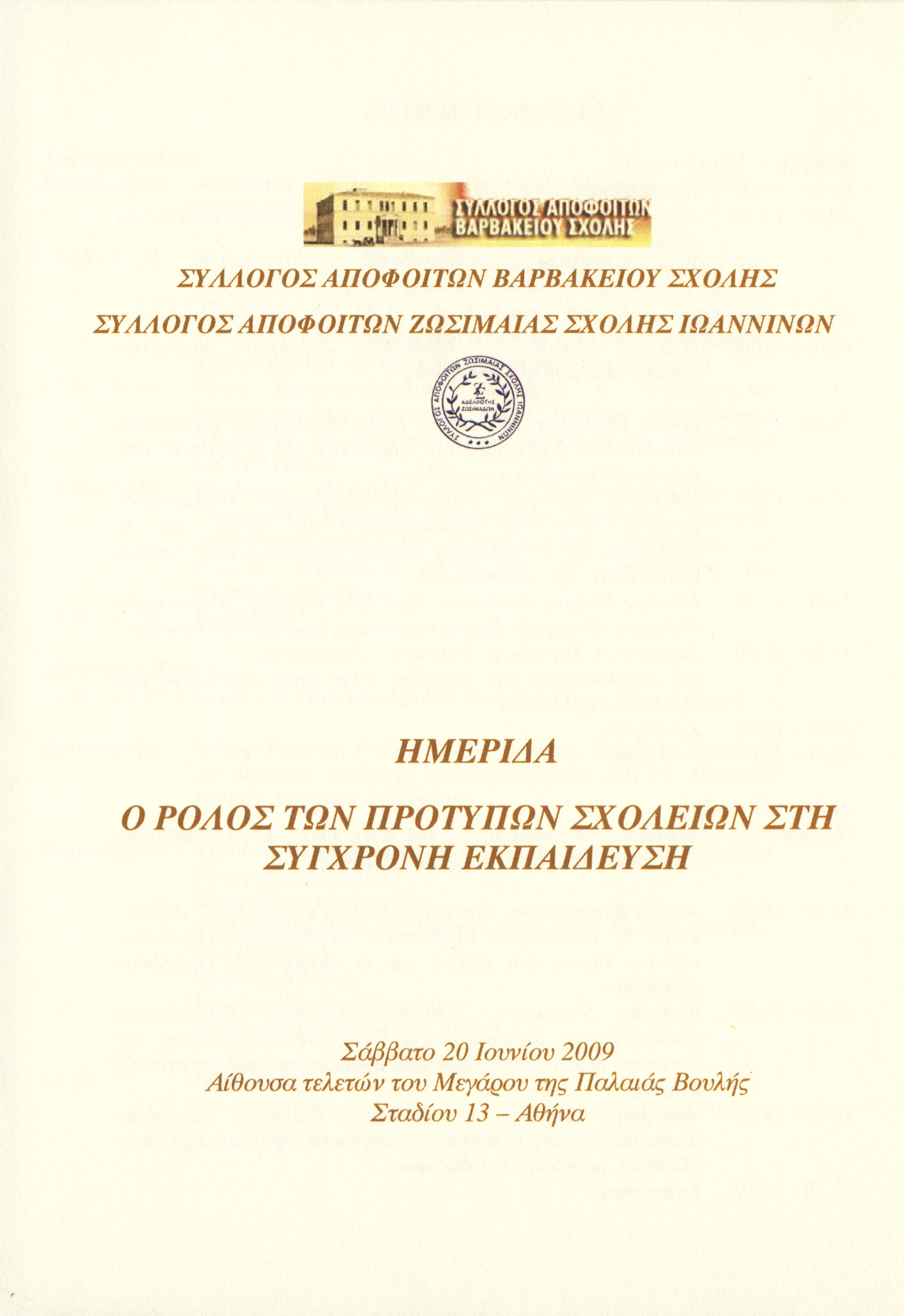 • Παλαιά Βουλή (2009) Ημερίδα για τα Πρότυπα Σχολεία