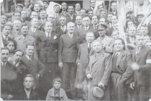 Με τα γυαλιά, πίσω από τον στρατιωτικό, ο δήμαρχος Δημ. Βλαχλείδης, αριστερά στη δεύτερη σειρά ο ιδρυτής τού “Ηπειρωτικού Αγώνα” Ευθύμιος Τζάλλας και δεξιά στην πρώτη σειρά ο εκδότης τής εφημερίδας “Κραυγή” και μετέπειτα δήμαρχος Γρηγόρης Σακκάς.