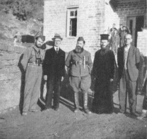 Αντιπροσωπεία επιφανών Γιαννιωτών στις 4 Οκτωβρίου του 1943 συναντιέται με τον αρχηγό του ΕΔΕΣ Ναπολέοντα Ζέρβα στους Σκιαδάδες Άρτας. Εικονίζονται από αριστερά: Αξιωματικός του Ζέρβα, ο Δήμαρχος Ιωαννιτών Δημήτριος Βλαχλείδης, Οο αρχηγός του ΕΔΕΣ Ναπολέων Ζέρβας,ο αρχιδιάκονος Αθανάσιος Νάτσης και ο έμπορος Δημήτριος Δούμας.