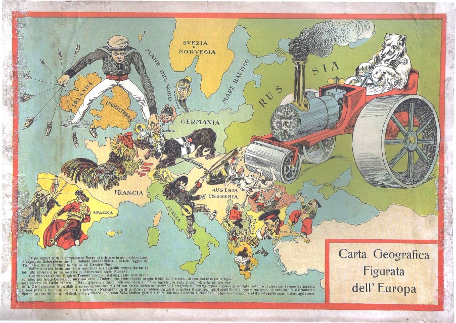 - Χάρτης 3. Χάρτης της Ευρώπης, 1916. «Η λευκή ρωσική αρκούδα ισοπεδώνει το αυστριακό σκυλί µε τον ρωσικό οδοστρωτήρα, ο γαλλικός κόκορας τσιµπάει τον γερµανικό σκύλο, ενώ ο βρετανός ναύτης τον γρονθοκοπά».