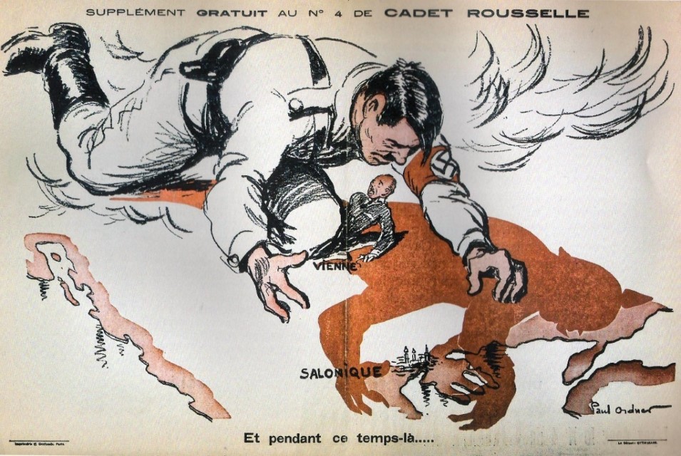 - Χάρτης 4. «Ένας γιγάντιος Χίτλερ µε τη σβάστικα στο περιβραχιόνιο σέρνεται απειλητικά πάνω από την Ευρώπη». Χάρτης του 1934, ο πόλεµος έρχεται…