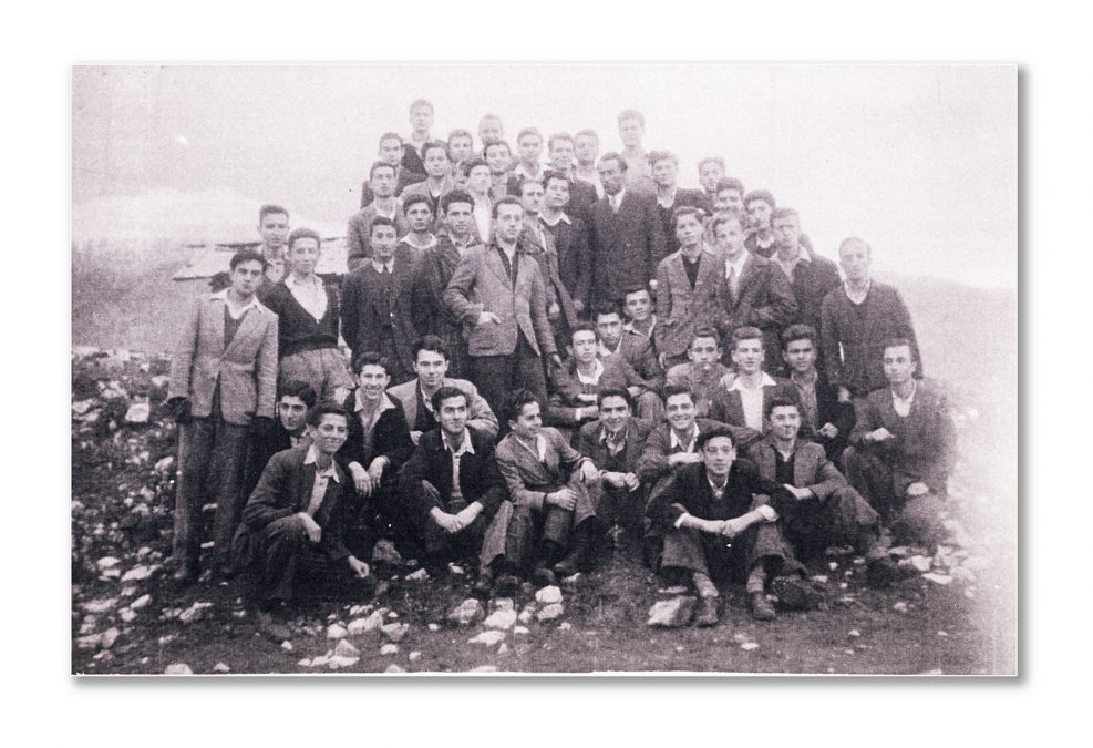 Β) Όρθιοι: 18) Βράσκος Δημ, 19) Τζαλονίκος Τιμ., 20) Παπαστύλος Νικ., 21) Νασιές Γρηγ., 22) ΧόιvαςΑναστ., 23) Παπαγεωργίου Περικλ., 24) Παπαδόπουλος Ευάγ., 25) Μπενέκος Αντ., 26) Καντάρας Νικ., 27) Παππάς Γεώρ., 28) Γρίβας Αδαμ., 29) Κάσσος Αντ., 30) ; , 31) Ιωαννίδης Σταύρ., 32) Σκουρογιάννης Πίνδ., 33) Παπαϊωάννου Ευάγ., 34) Μπαλτογιάννης Χων., 35) Παπαθεμιστοκλέους Ιωάν., 36) Γαλανόπουλος Στέφ., 37) Χατζηγιάννης καθηγητής Γυμναστικής, 38) Μακρής Θεόδ., 39) Γεωργιάδης Θεόδ., 40) Ζάχαρης Γεώρ., 41) Φίλιος Κων., 42) Μαλάμης Σπύρ., 43) Τσιώκος Ευστρ., 44) ΚούτλαςΑναστ., 45) Κουλίδας Κων., &46) Χάριτος Γεώρ.