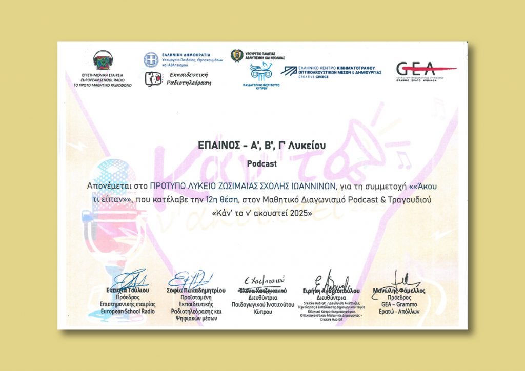 Αναδημοσίευση από το epirustvnews https://www.epirus-tv-news.gr/ 2ο βραβείο στο Πρότυπο Γυμνάσιο Ζωσιμαίας Σχολής Ιωαννίνων στον 20ο Πανελλαδικό Μαθητικό Διαγωνισμό «Εικονική Επιχείρηση 2025», του Junior Achievement Greece. […]