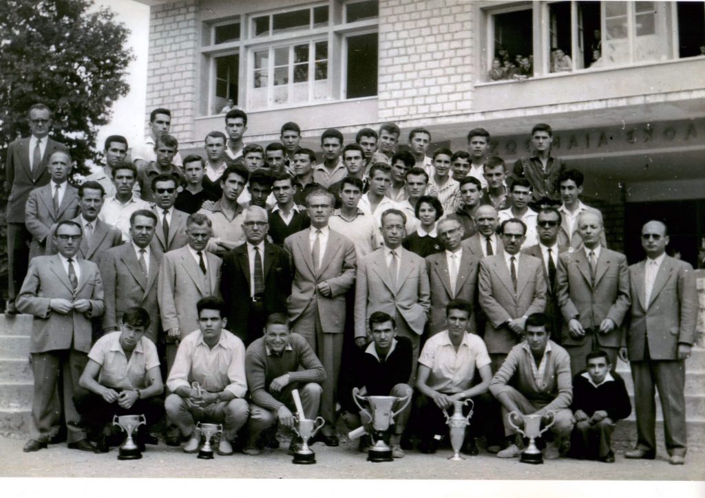 Γυμναστικές Επιδείξεις του 1961. Αναμνηστική φωτογραφία των Καθηγητών και των μελών των αθλητικών ομάδων του σχολείου.
